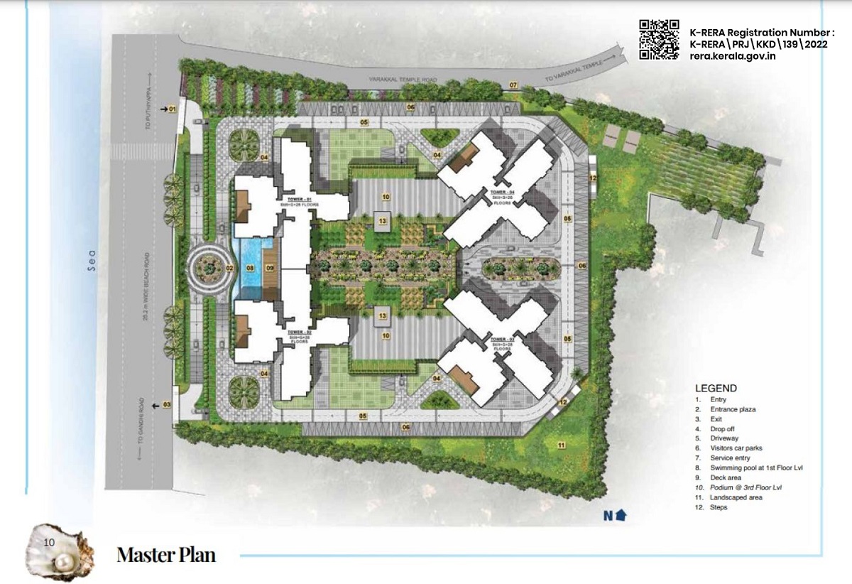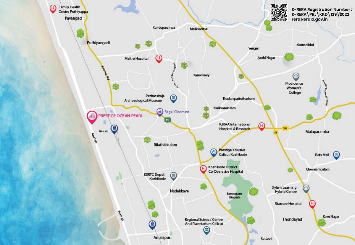 Prestige Ocean Pearl Calicut is a world-class residential project spread across 6.5 acres, located at West Hill. Prestige Ocean Pearl Calicut consists of 530 premium homes in a mix of 3 & 4 BHK units, housed in four 30-storey towers. Prestige Ocean Pearl Calicut offers multiple leisure amenities like a multipurpose hall, a gym, a swimming pool, indoor games & a clubhouse. Sustainability is integral to design at Prestige Kozhikode, with solar power for common area lighting & provision for electric vehicle charging stations along with dedicated parking at Prestige Ocean Pearl Calicut.